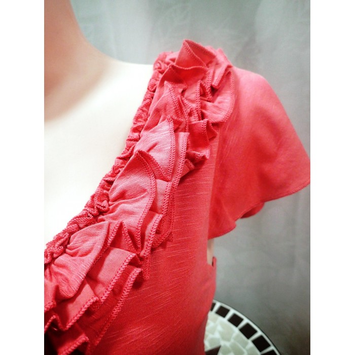 Top s peknou plastickou aplikáciou kvetín. Zloženie: viskóza 95 %, elastan 5%.