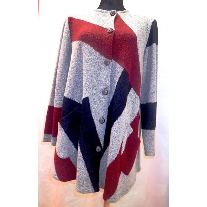 Béžovo-bordový kabátik. Jemne nopková pletenina.