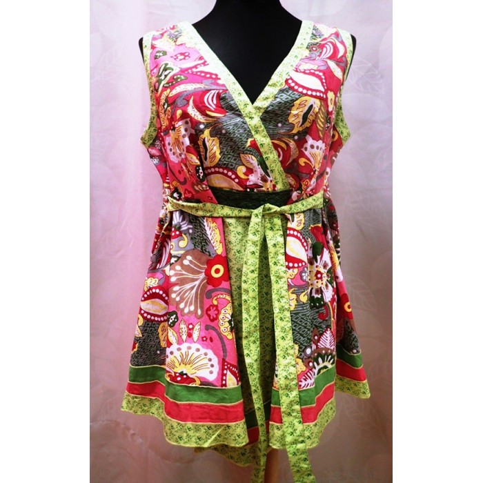 Pestrá veselá blúzka sviežich farieb, strih do Á-čka, všitá stužka na previazanie.
